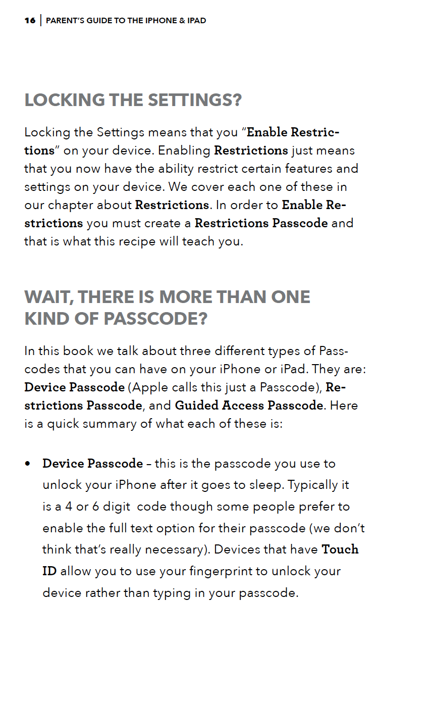 We crafted this book for the parent, not the tech wizard. Think of it like a cookbook for your device. We provide detailed step-by-step recipes on everything you can do and control on the iPhone and iPad. Our tutorials are detailed and simple to follow. The goal is for you to learn the concepts so that you can feel confident that you are in control. It isn’t an encyclopedia, and you won’t have to wade through loads of technical jargon. Your child’s future will be increasingly connected online, and you owe it to them to understand the tools they will use and how to protect them.